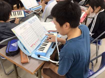 鍵盤ハーモニカで和音を演奏しました。