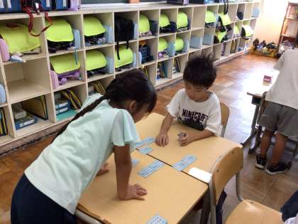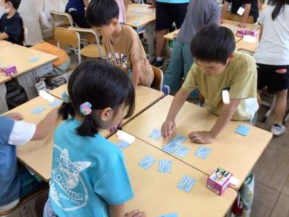 少しずつ札を覚えて、上の句で取れる子が増えてきました。
