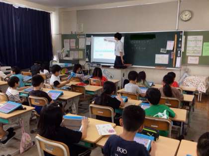 ICT支援員の先生から、スクラッチJr.を使ったプログラミングを教えてもらいました。