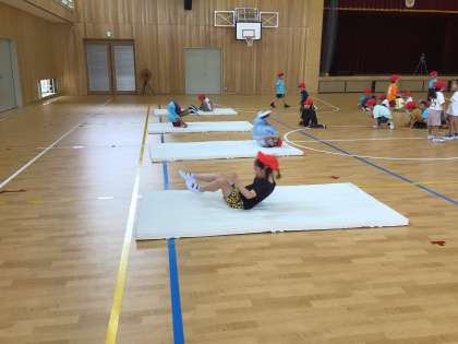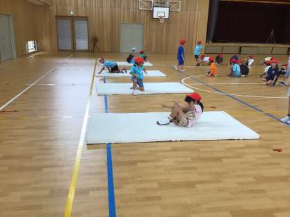 前転の練習に取り組みました。覚えたポイントを意識してたくさん練習することができました。