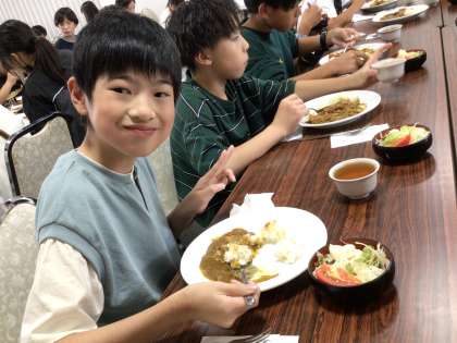 お昼ご飯はカレーの食べ放題です。