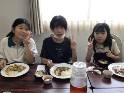 お昼ご飯はカレーの食べ放題です。