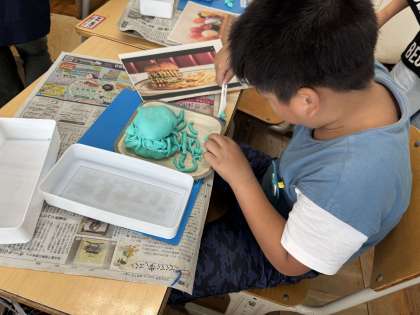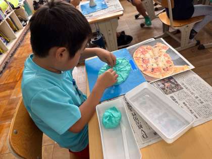 ごちそうパーティに向けて、粘土で練習をしました。美味しそうな作品がたくさんできました。