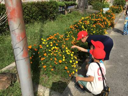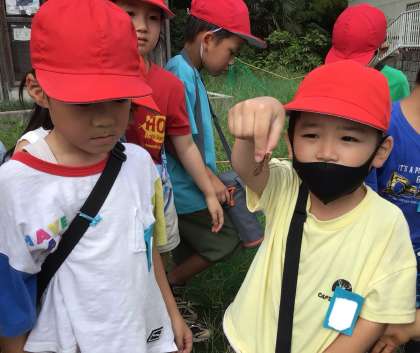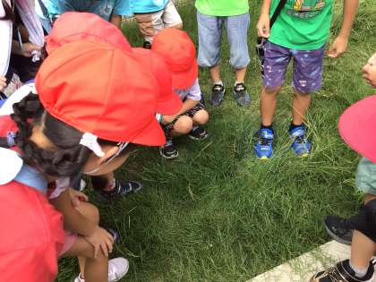 花の近くや葉っぱの近くにどんな虫がいるか、みんなで探しました。