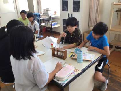 水溶液の性質を調べるために実験し、グループで話し合いました。