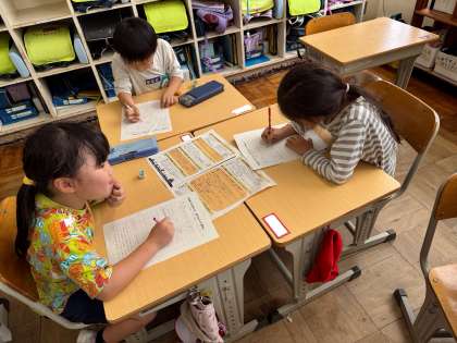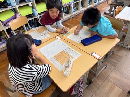 週末のふれあいフェスタに向けて、班別行動の計画を立てました。当日、ボランティアに参加していただける保護者の皆様、サポートをよろしくお願いします。