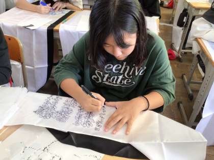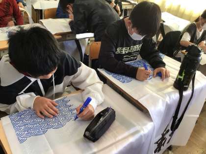 運動会で着る衣装作りをしました。