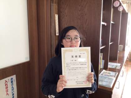 464.467.468号 公開日 2024/11/11 更新日 2024/11/11 笑顔賞 464:毎日の授業では、自分の意見をしっかりともち、みんなの前で堂々と発表することで、クラスの学びを深めています。 467:前期学級委員として、クラスのために呼びかけをしてくれました。 468:前期学級委員として、クラスのために呼びかけをしてくれました。
