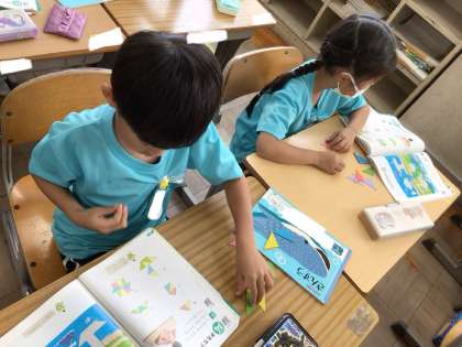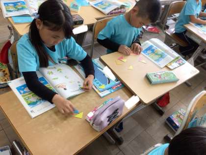 色板を使って教科書にある形を真似して作りました。