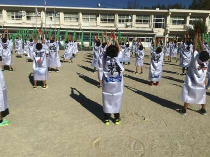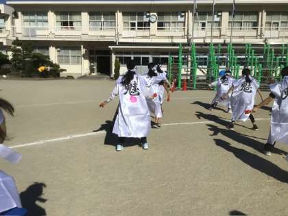 7・8・9組 高学年の想いを込めてー5・6年運動会練習ー 公開日 2024/11/14 更新日 2024/11/14 各学年から 本番に向けて ソーラン節の練習に熱の入る5・6年生 子ども達の纒う法被の背中には それぞれのクラスの想いのこもった漢字が認められています。 子ども達がどんな想いを込めて踊るのか 法被姿の子ども達の姿にも注目です!