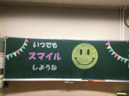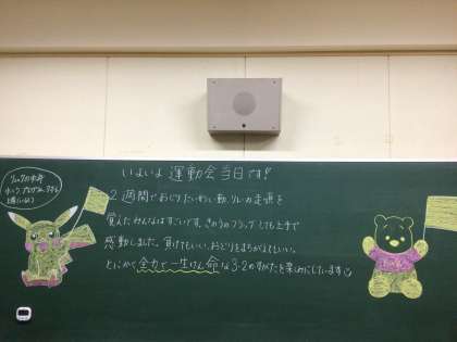 さあ、はじまるよ!! 黒板には、担当からのメッセージが