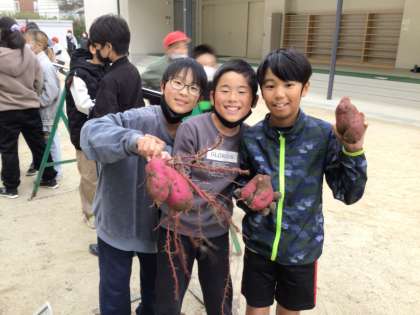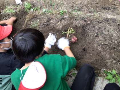 春に植えたおいもを収穫しました。このおいもで、楽しい企画を考えていきます。