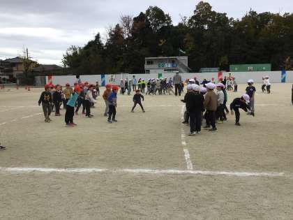 1年生 学年体育 公開日 2024/11/27 更新日 2024/11/27 各学年から 1年生全クラスで鬼ごっことドッジボールをしました。 先生鬼から楽しそうに逃げたり、協力してボールを投げたりしている様子が見えました。