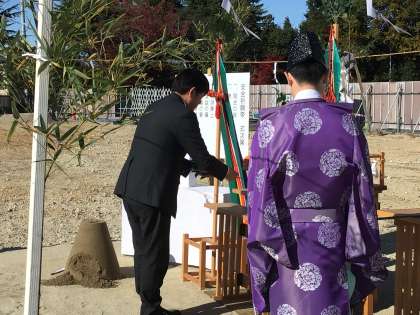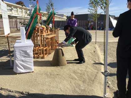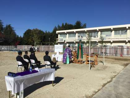 建設会社の方と校長先生が出席し、安全に工事が行われるように祈願しました。