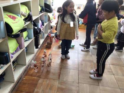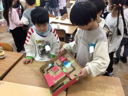 自分たちでつくった秋のおもちゃを、友達と一緒に遊びました。