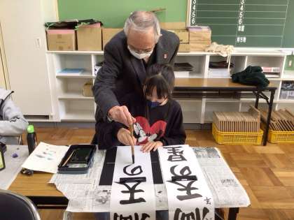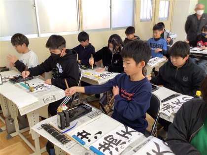 講師の方に来ていただき、書き初めの練習をしました。