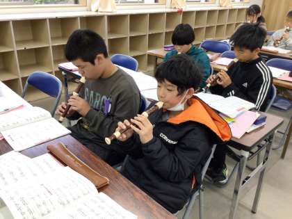 6年 音楽 リコーダー1 公開日 2024/12/13 更新日 2024/12/13 各学年から 音楽の時間では、毎時間リコーダーの練習に取り組んでいます。4月から比べるととても上達していることがよく分かります。