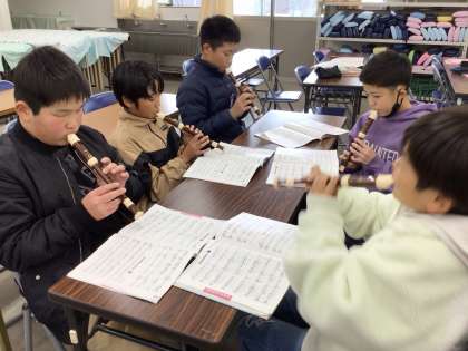 音楽の時間では、毎時間リコーダーの練習に取り組んでいます。4月から比べるととても上達していることがよく分かります。
