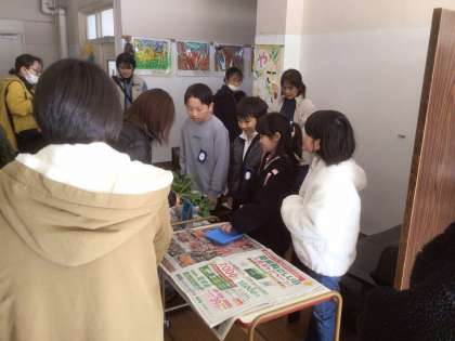 笑顔で接客頑張りました!ーやさいいちば4日目ー 公開日 2024/12/19 更新日 2024/12/19 各学年から 「やさいいちば」は今日もたくさんのお客様にご来店いただき、大賑わい。 お客さんをお待たせしないようにと 一生懸命接客する子ども達。 大忙しでしたが、喜んで買ってもらえるようにと みんなで力を合わせ、笑顔での接客に心がけていました。 いよいよ明日が最終日。 最終日も、お客さんたくさん来てくれるといいな。