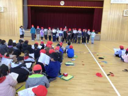 2 学級合唱 各クラスで選んだ曲を歌いました。 2番は全員で。