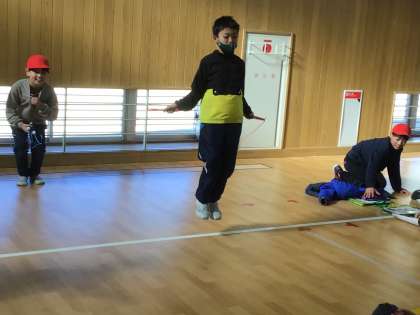 3 縄跳び大会 二重跳び あや跳び 交差跳び 前跳び ペアで数を数え合いました。 各種目の1位が決まりました。