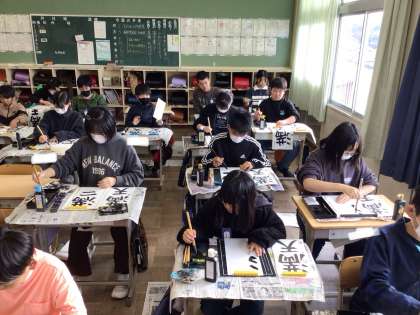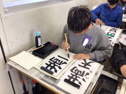 落ち着いた雰囲気の中、書き初めを行いました。