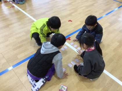 学年で新春百人一首大会を行いました。どの子も以前よりも札を取るスピードが速くなっていました。