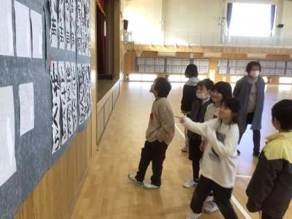 校内書き初め展を子ども達も鑑賞しました。