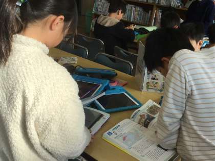 環境学習のまとめをするために 図書室で調べ活動をしました。