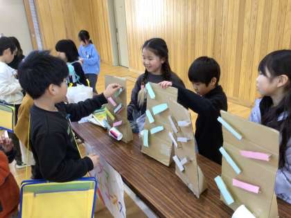 2年 生活科おもちゃまつり 公開日 2025/01/22 更新日 2025/01/22 各学年から 1年生を招待して、おもちゃまつりを開催しました。1年生に自作のおもちゃで遊んでもらい「楽しかった」と喜んでもらえて、うれしそうな2年生でした。