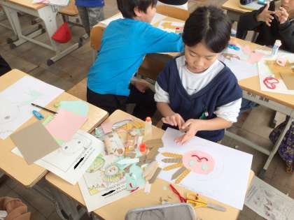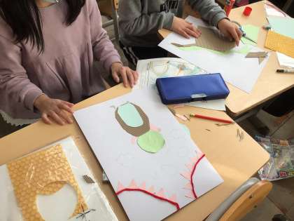 プチプチ紙版画でカラフルな生き物を作っています