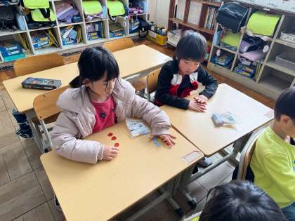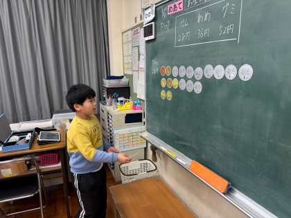 買い物場面でのお金の出し方を考えながら大きい数について学習しました。