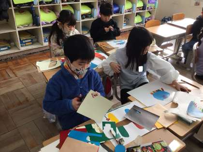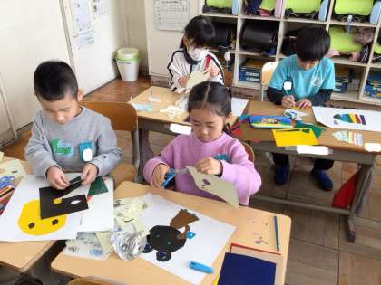 1年生 図画工作科 公開日 2025/01/31 更新日 2025/01/31 各学年から 「うつしたかたちから」 カラフルな生き物を考えて、シール版画のもとを作りました。 8色を上手く使って、様々な生き物を作っていました。 紙にうつすのが楽しみです。