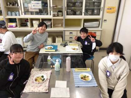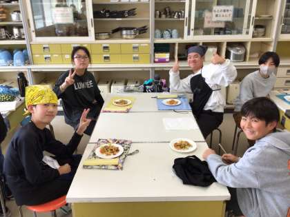 各グループで決めたおかずを作りました。調理だけでなく、準備片付けも協力して行いました。