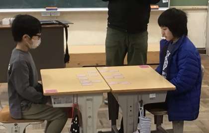 7・9組、8組それぞれの代表に選ばれた児童が代表の座をかけて対戦。