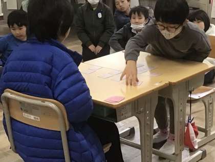 百人一首の音読練習に一生懸命取り組んだ子ども達。