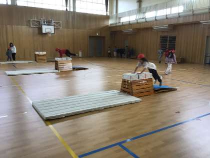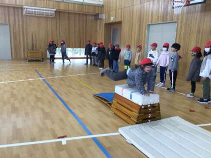 2年 体育 公開日 2025/02/05 更新日 2025/02/05 各学年から 体育で「とびばこあそび」をしています。3段からスタートして、6段までとんでいる子もいます。みんなで協力して片付けまでしっかり取り組んでいます。