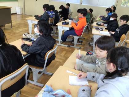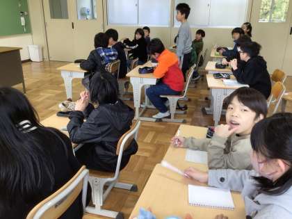米プロジェクトでお世話になっている中村さんに、米づくりに関するインタビューをさせていただきました。皆真剣な様子で聴き、熱心にメモをとっていました