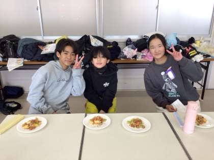 各グループで決めたおかずを作りました。調理だけでなく、準備片付けも協力して行いました。