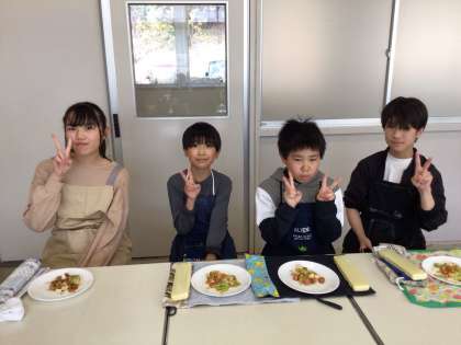 各グループで決めたおかずを作りました。調理だけでなく、準備片付けも協力して行いました。