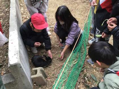 飼育委員会の企画「ふれあい週間」で、アニマルランドのうさぎとふれあうことができました。