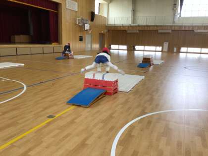 2年 体育 公開日 2025/02/12 更新日 2025/02/12 各学年から 体育で「とびばこあそび」に取り組んでいます。今日は、2台のとびばこを並べて、色々な技を組み合わせて連続とびに挑戦しました。