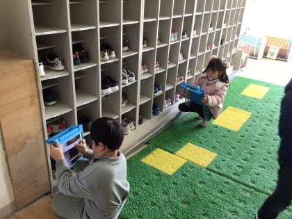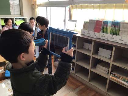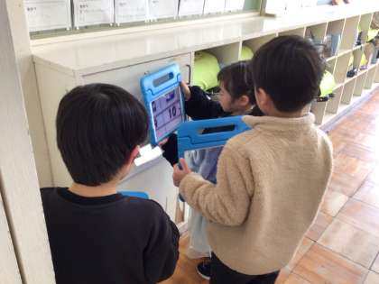 教室や廊下にある1から100までの数字を探しました。見つけたらタブレットで写真を撮って、発表しました。