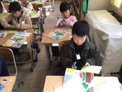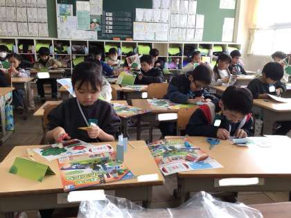 「おって たてたら」 いつもはペラペラの紙だけど、おると立ち上がることを使って作品を作りました。