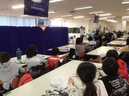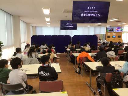 豊和化成の工場見学をさせていただきました。紹介ビデオを見たあと、工場や実験室を見学しました。