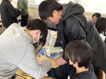 電磁石の働きについて確認しています。