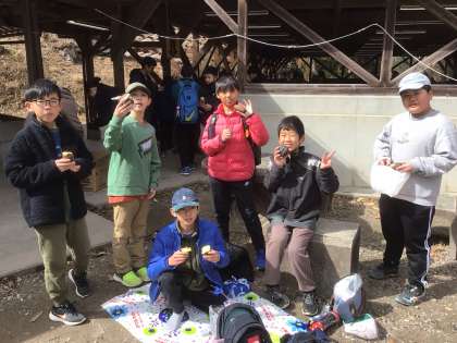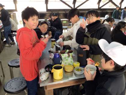 豊田市総合野外センターにて、火おこし体験や焼き芋づくり、レクリエーションをして楽しみました。小学校生活の思い出が、また一つ増えました。
