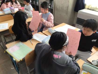 算数の学習では、授業の最初に「本読み計算」に取り組んでいます。どの子も記録を伸ばそうと一生懸命です。