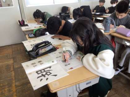 三つの部分をもつ漢字の字形の整え方を考えながら丁寧に書きました。