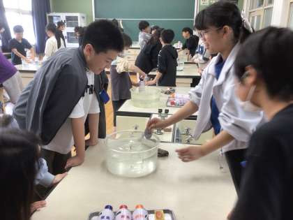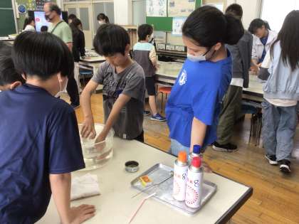気体の中のろうそくの様子を調べました。